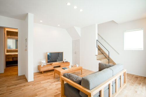 漆喰と無垢材 自然素材の家(Blanche/ブランシュ)家事動線を考えた間取と快適な環境づくりを考えた空調計画。漆喰と無垢の家を体感ください。